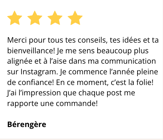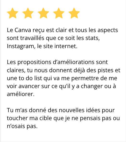 ➡️ L'audit Com&Shine: Parce que tu as déjà testé surement plein de choses pour ton Insta, ici, on analyse ton compte insta et ton site web à 360° pour cibler les actions qui fonctionnent vraiment et te ramènent des ventes!