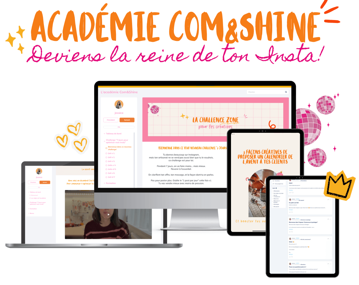 ☀️ Alors rejoins l’Academie Com&Shine et rayonne enfin sur Instagram avec tes crEas.